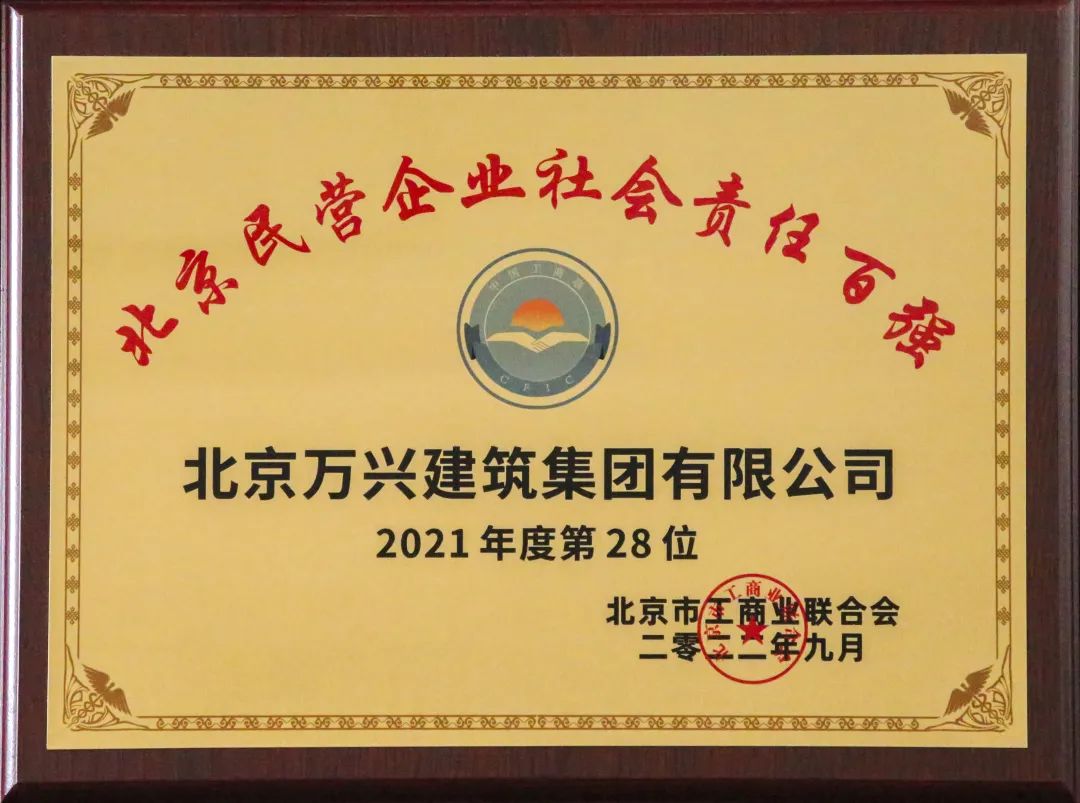 【概要描述】近日,北京市工商業(yè)聯(lián)合會(huì)聯(lián)合有關(guān)部門發(fā)布了北京民營(yíng)企業(yè)“1+4”百?gòu)?qiáng)榜單。北京萬(wàn)興建筑集團(tuán)憑借在綜合實(shí)力、科技創(chuàng)新、社會(huì)責(zé)任等領(lǐng)域的優(yōu)秀表現(xiàn),榮登“北京民營(yíng)企業(yè)百?gòu)?qiáng)”主榜單以及“北京民營(yíng)企業(yè)社會(huì)責(zé)任百?gòu)?qiáng)”榜單。